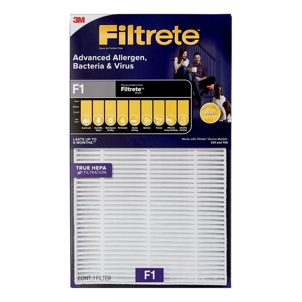 Filtrete Advanced Allergen, Bacteria & Virus True HEPA Room Air Purifier Filter, F1
