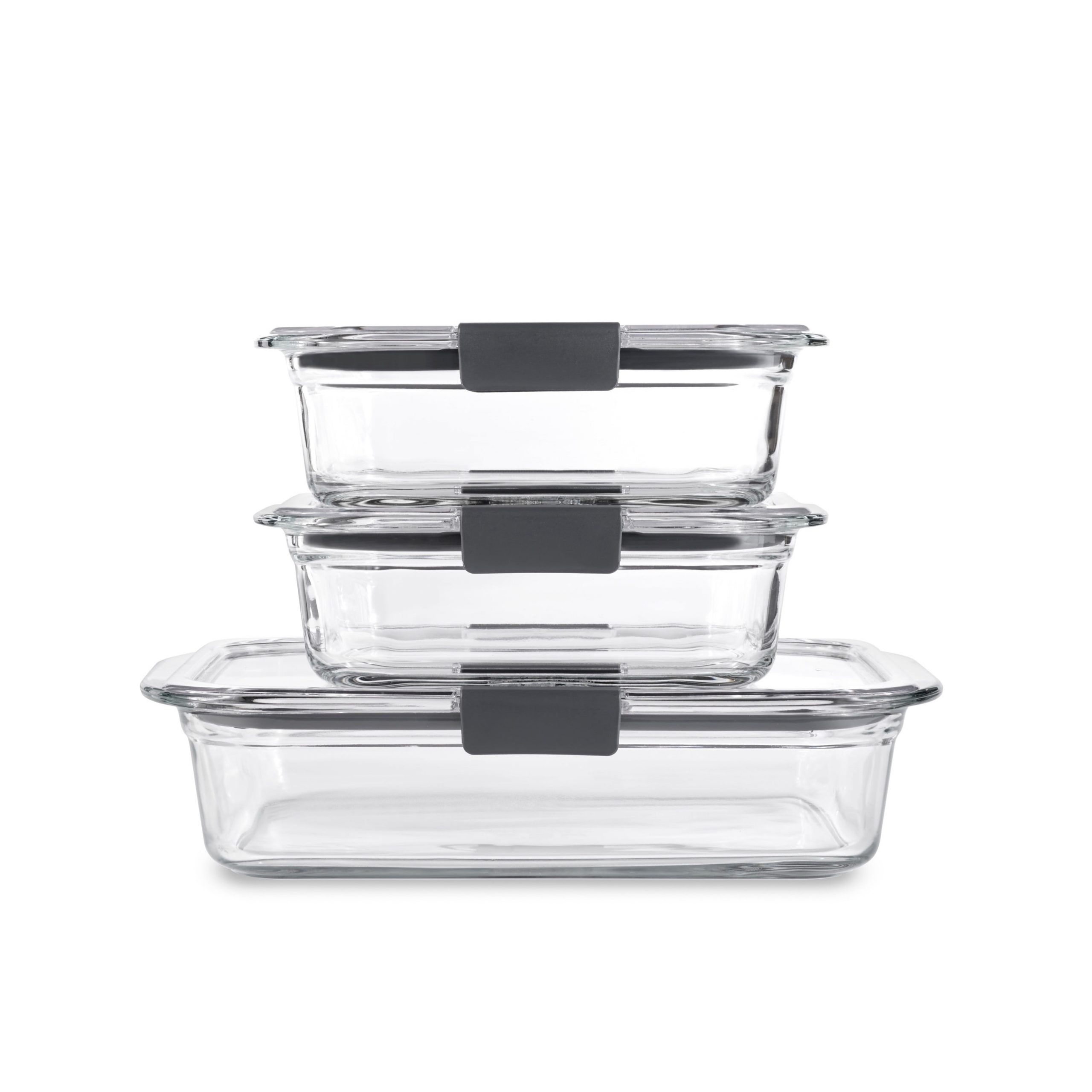 Rubbermaid brilliance glass food storage containers are intelligently crafted, and beautifully designed. These glass containers have clear plastic lids with a 100% airtight, leak-proof seal and secure latches to make reheating and storing easy. Built-in vents under the latches allow steam to escape so you can microwave food splatter-free, without removing the lid. Crystal-clear lids and bases make it easy to see what’s stored inside. The lids are made with stain Shield plastic so they’re stain and odor resistant, helping them stay looking like new. These food storage containers are space saving, with a modular design for perfect organization and stacking in your fridge or cabinet. The universal lids fit across all Rubbermaid brilliance containers, regardless of material type. These Rubbermaid containers are BPA-free, microwave-safe, dishwasher-safe, and freezer-safe. The glass container bases are also oven safe up to 450 degrees.